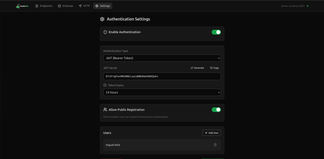 These are mock endpoints. Do not use in production! Passwords and tokens are stored in a simplified manner.